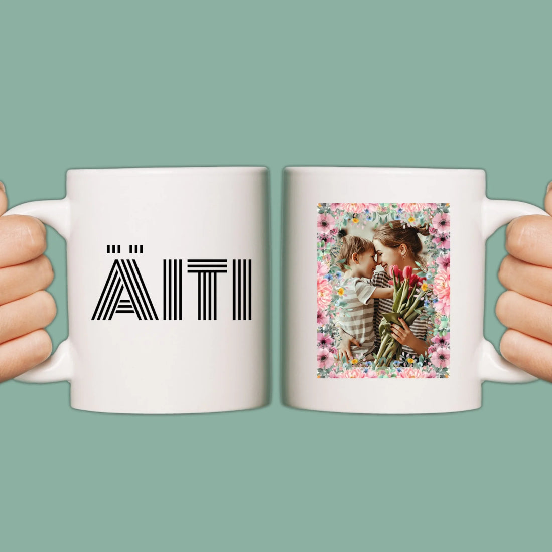 Personoitu muki äidille tai mummille omalla kuvalla ja tekstillä