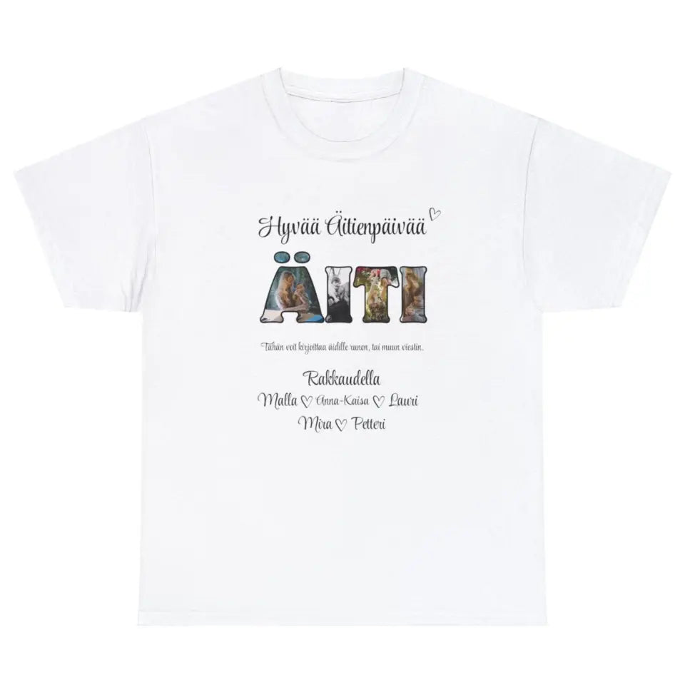 Personoitu äitienpäiväpaita omilla kuvilla ja nimillä – uniikki lahja äidille