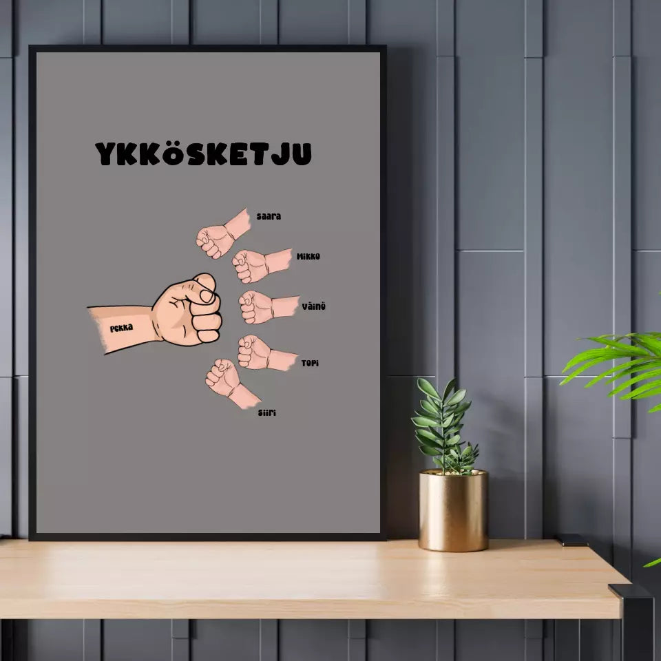 Muokkis.fi:n julisteet ja printit sopivat täydellisesti niin olohuoneen seinälle kuin lastenhuoneeseenkin. Tilaa helposti netistä ja ilahduta ystävää, perheenjäsentä tai vaikka itseäsi. Personoidulla lahjalla osoitat, että olet nähnyt vaivaa ja tunnet lahjansaajan tyylin. Nyt on aika tehdä vaikutus – ja hymyillä leveästi!