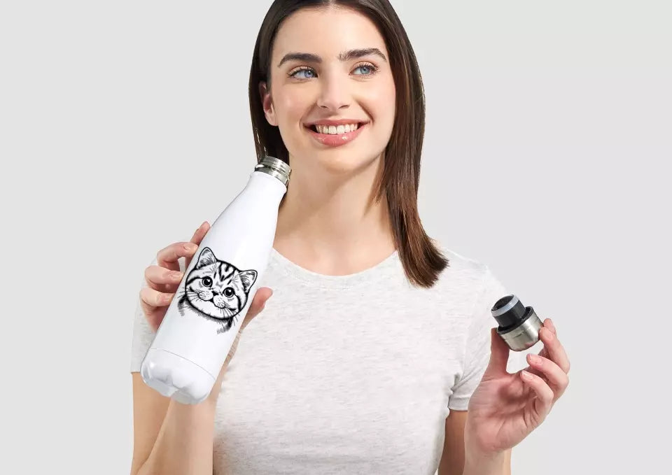Muokkis.fi tekee juomapullon personoinnista hauskaa ja vaivatonta! Valitse ensin suosikkisi monipuolisesta mallivalikoimastamme – löydät niin tyylikkäät teräspullot kuin kevyet muoviset vaihtoehdotkin. Personointi onnistuu helposti suoraan selaimessa ilman erillisiä ohjelmia tai sovelluksia. 🎨💻