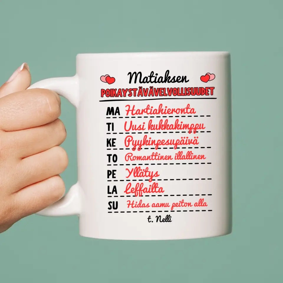 Rakkaan Velvollisuudet – Personoitu Muki Hauskaksi Parisuhdelahjaksi