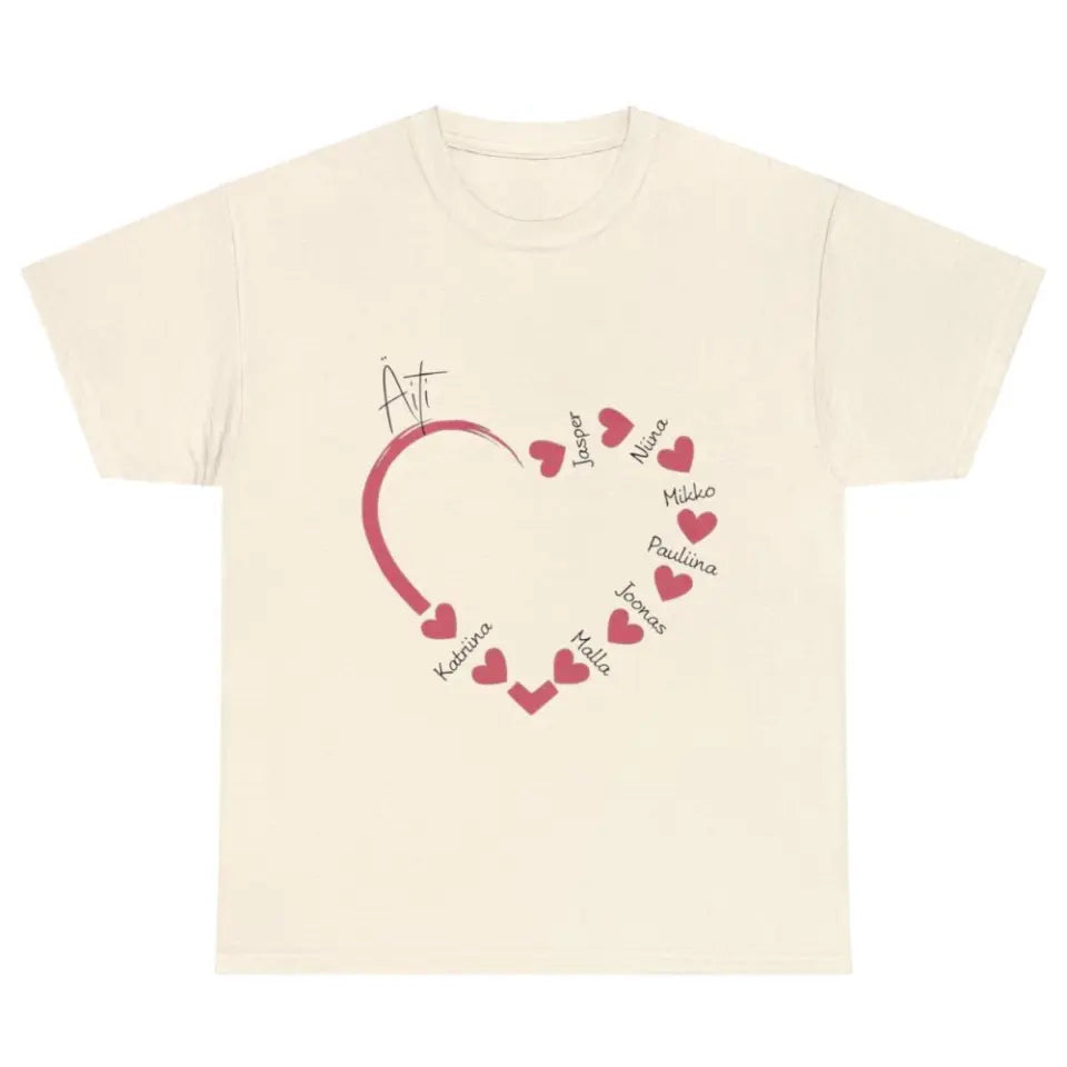 Personoitu t-paita tai college äidille – lasten nimet sydämessä