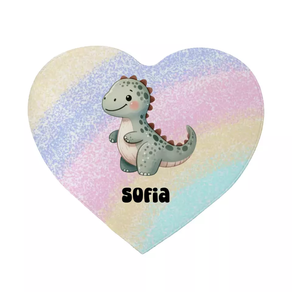 Suloinen sydänmatto lastenhuoneeseen lapsen nimellä ja eläinhahmolla