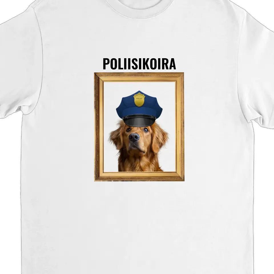 Hauska personoitu t-paita lemmikkisi kuvalla ja veikeällä hatulla