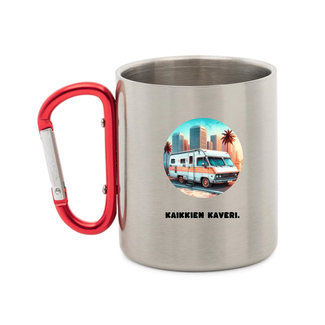 Teräksinen muki karabiinikahvalla – personoi lahjaksi karavaanarille