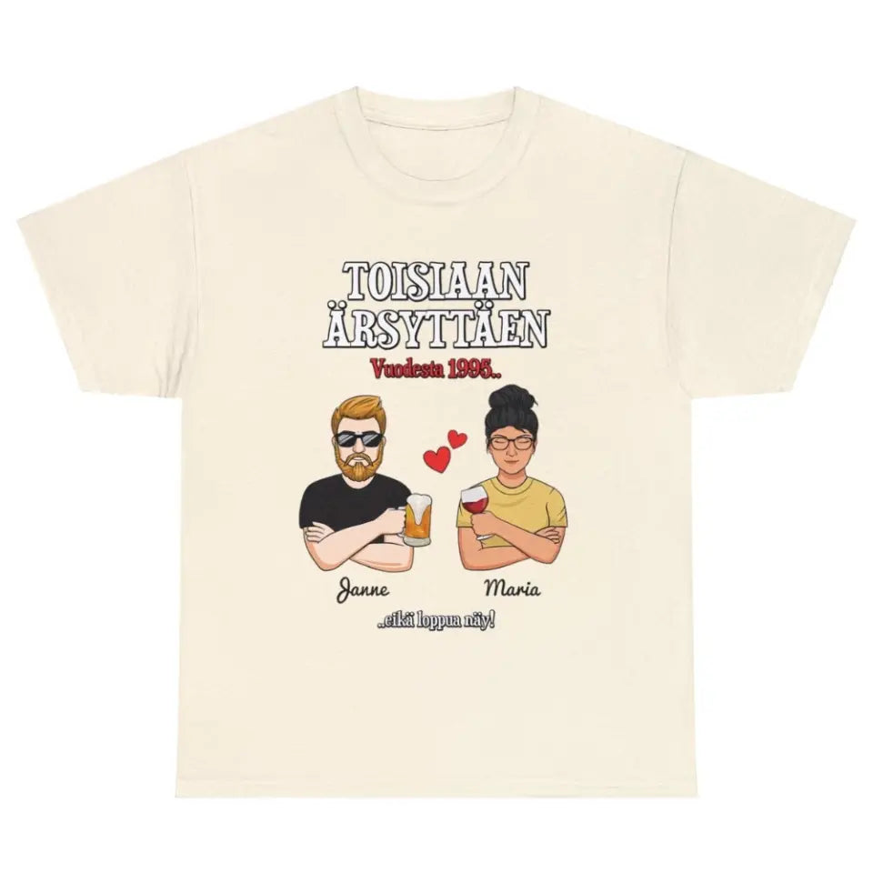 Personoitu T-paita pariskunnille – Toisiaan ärsyttäen vuodesta...
