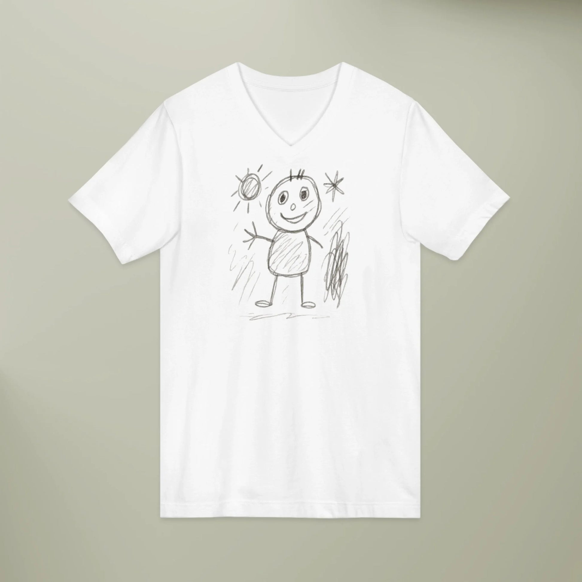 Tässäpä vasta hauska tapa tuoda persoonallisuutesi esille! Tämä tyylikäs V-aukkoinen T-paita muuttuu hetkessä uniikiksi luomukseksi, kun lisäät siihen oman kuvasi, tekstisi tai vaikkapa lapsen piirustuksen. Kuvittelepa isänpäivänä isän kasvoille leviävä leveä hymy, kun hän saa lahjaksi paidan, jossa on lapsen oma mestariteos!