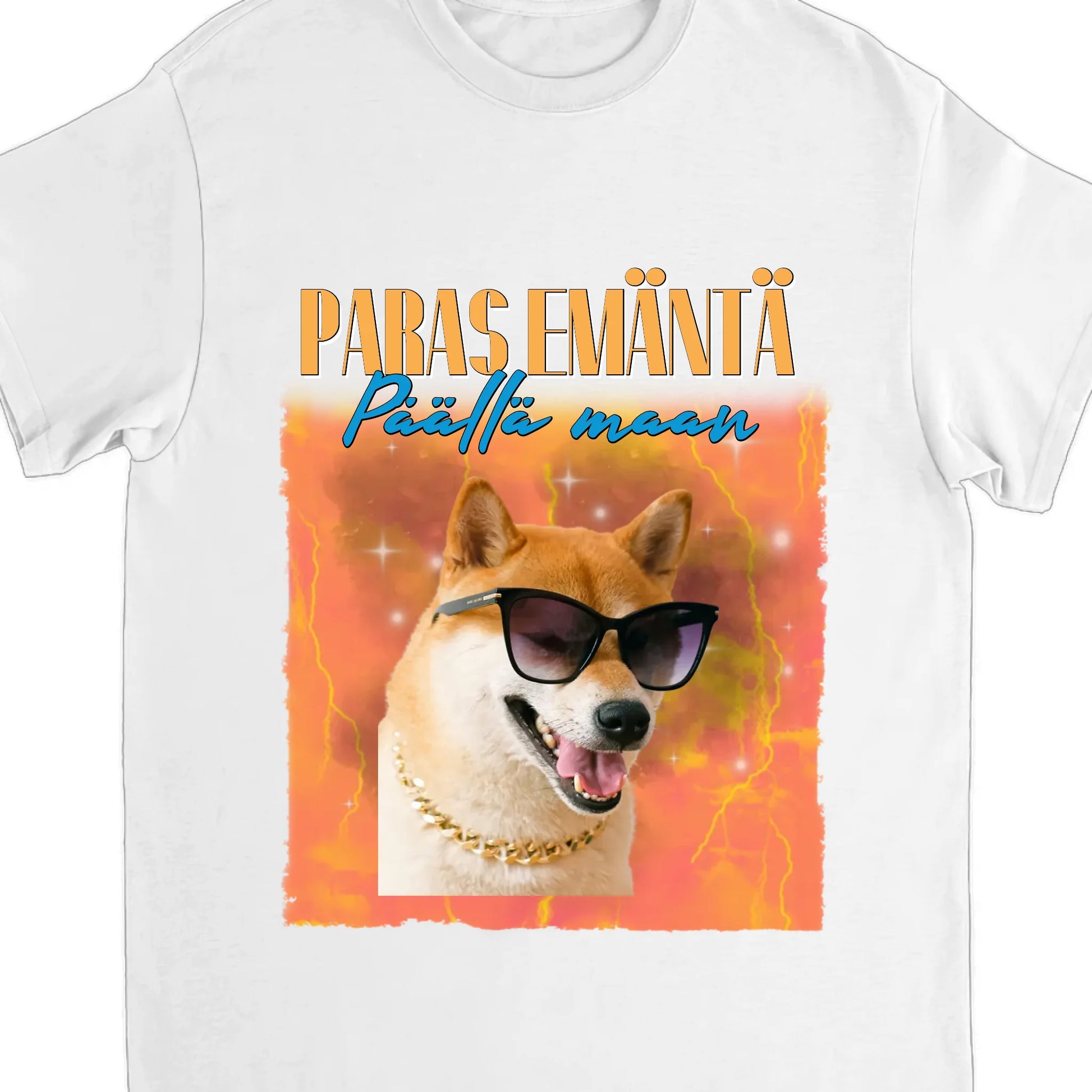 Onko sinulla maailman paras kissa tai koira? Nyt voit ikuistaa rakkaat lemmikkisi tähän uniikkiin vintage-henkiseen paitaan! Valitse kuvat, tausta ja teksti, ja luo helposti persoonallinen lahja itsellesi tai eläinrakkaalle ystävällesi.